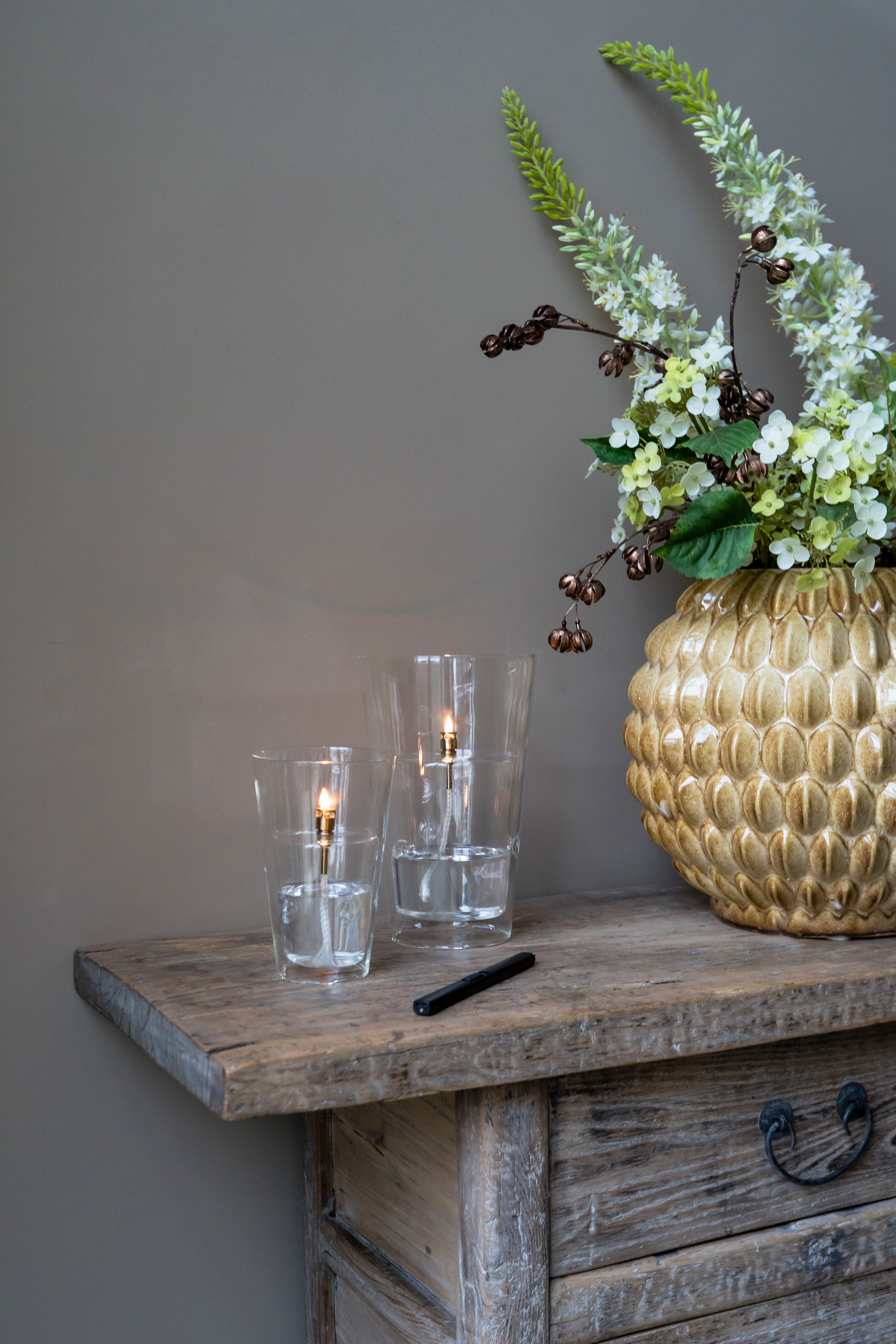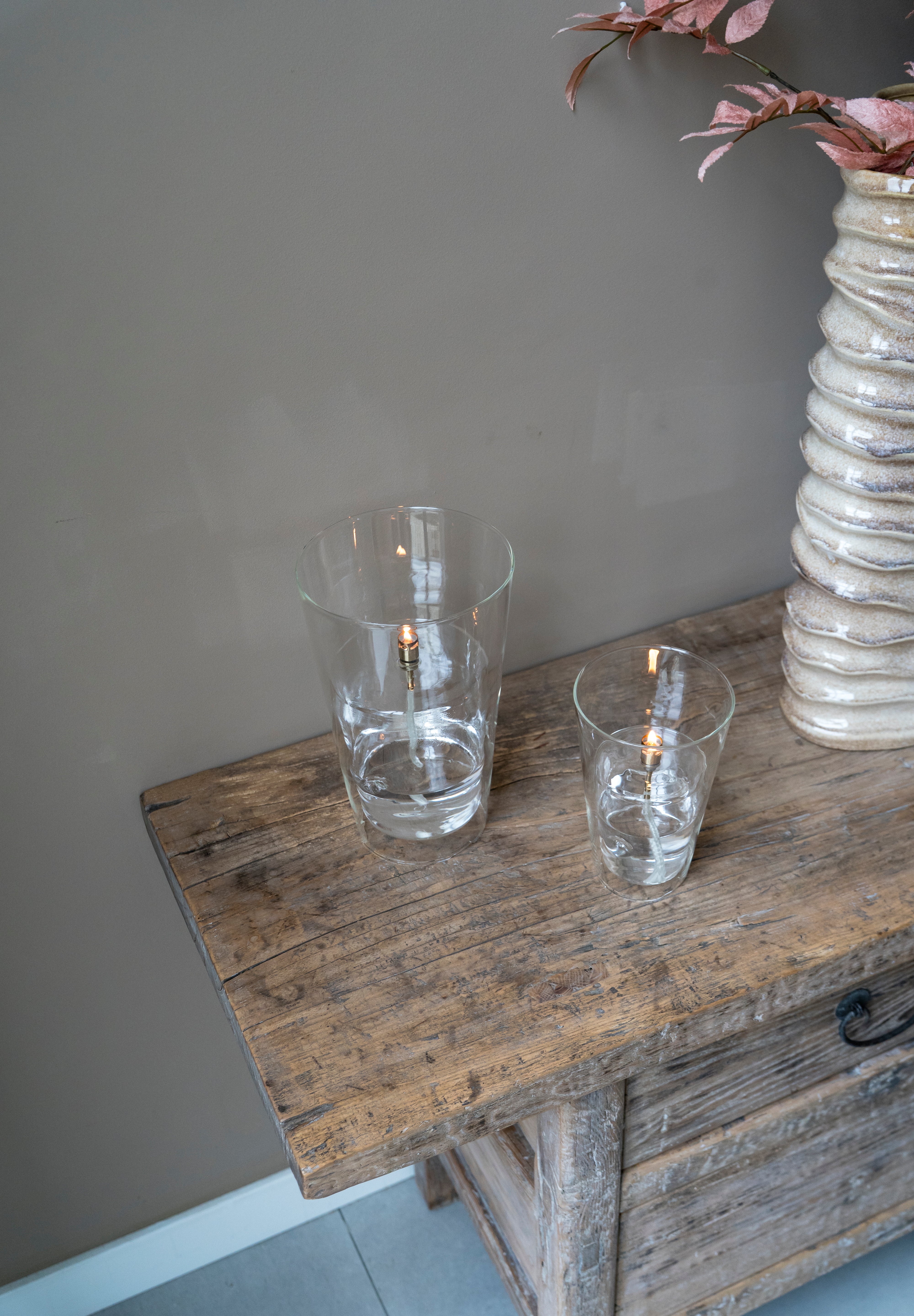 Die Kombination aus klarem Glas und Messingakzenten verleiht diesem Windlicht einen luxuriösen, aber zurückhaltenden Charakter. Eine stilvolle Lösung für alle, die Atmosphäre schaffen möchten, ohne Kompromisse bei Form oder Qualität einzugehen. Und mit Sorgfalt und Leidenschaft mundgeblasen.