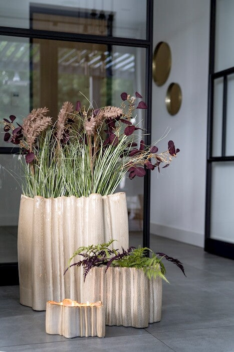 Maak kennis met onze unieke Sandy Coast-geurkaars, een ware combinatie van stijl en functie! Deze luxe kaars vult je huis met de warme, verfijnde geur van verse vijgen en brengt een ontspannen sfeer in elke kamer. Maar de magie eindigt niet bij de geur; zodra de kaars is opgebrand, transformeer je het kunstzinnige keramieken omhulsel tot een stijlvolle vaas. Met zijn rustieke zandkleur en golvende vorm past dit decoratieve stuk perfect in zowel moderne als klassieke interieurs. Een must-have voor wie houdt van praktische, esthetische accessoires met een luxueuze touch!