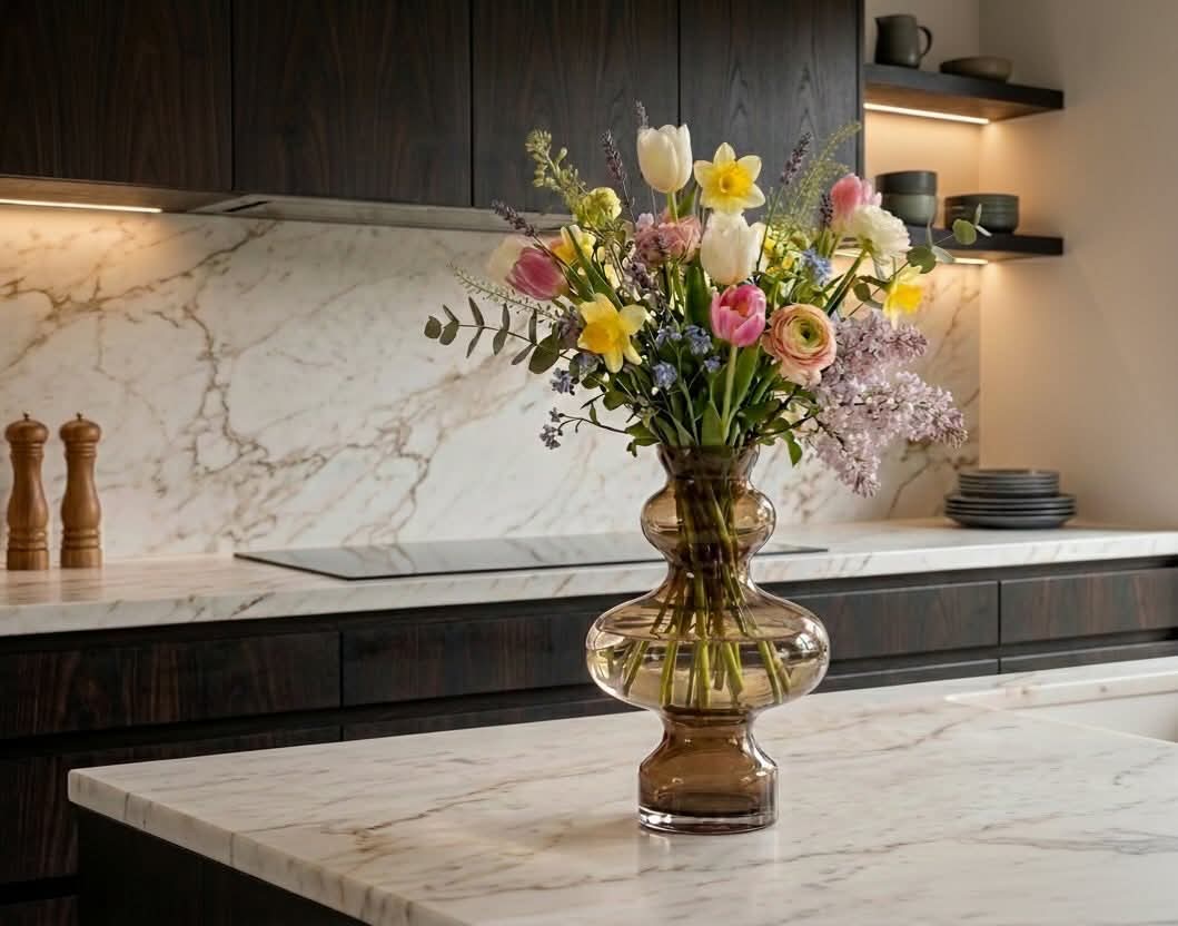 Whether you choose a subtle bouquet, a single branch, or use them purely as a decorative object – these vases effortlessly add a luxurious and warm atmosphere to any room.
