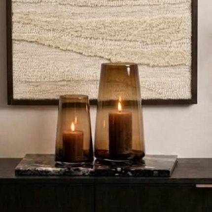 Use the vase as a decorative object with a few branches or flowers, or create an atmospheric setting by placing a candle inside. The glass provides a beautifully diffused light, instantly adding warmth and coziness to your space.