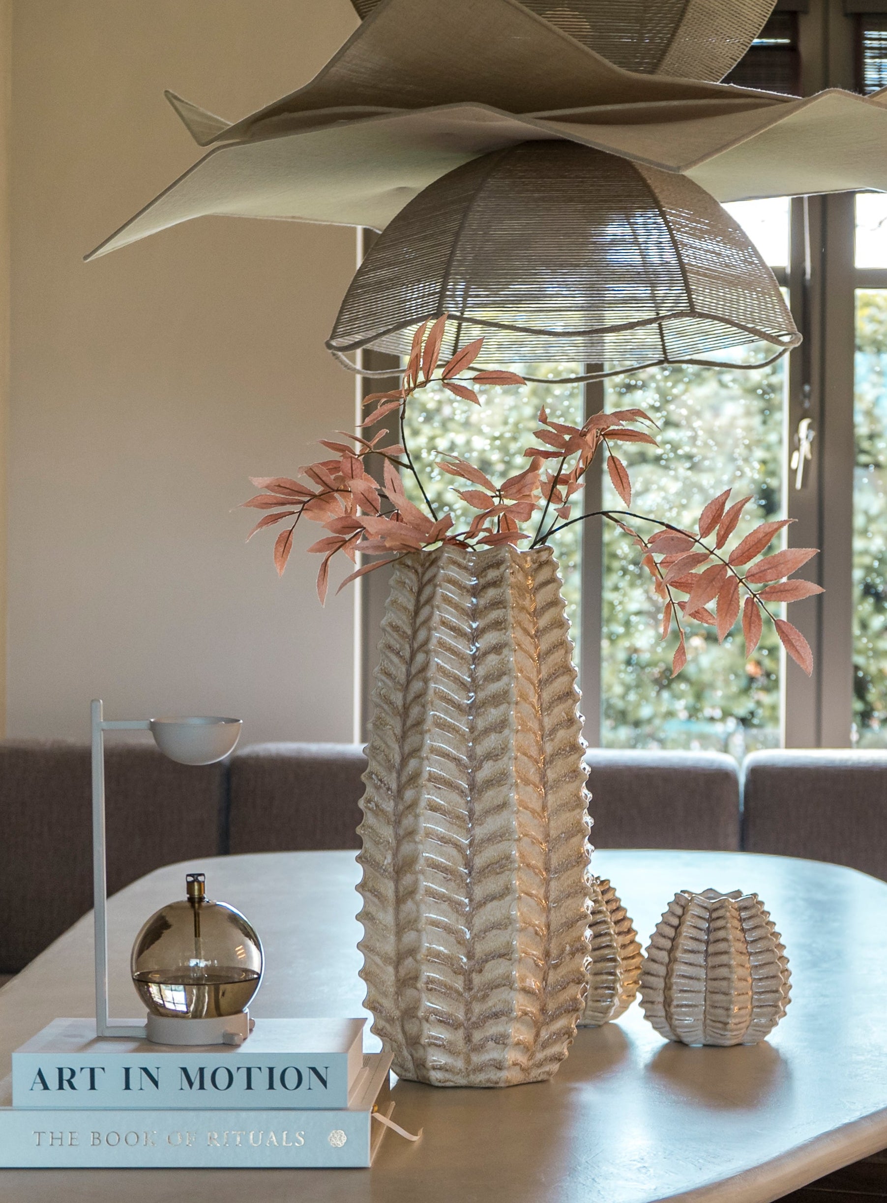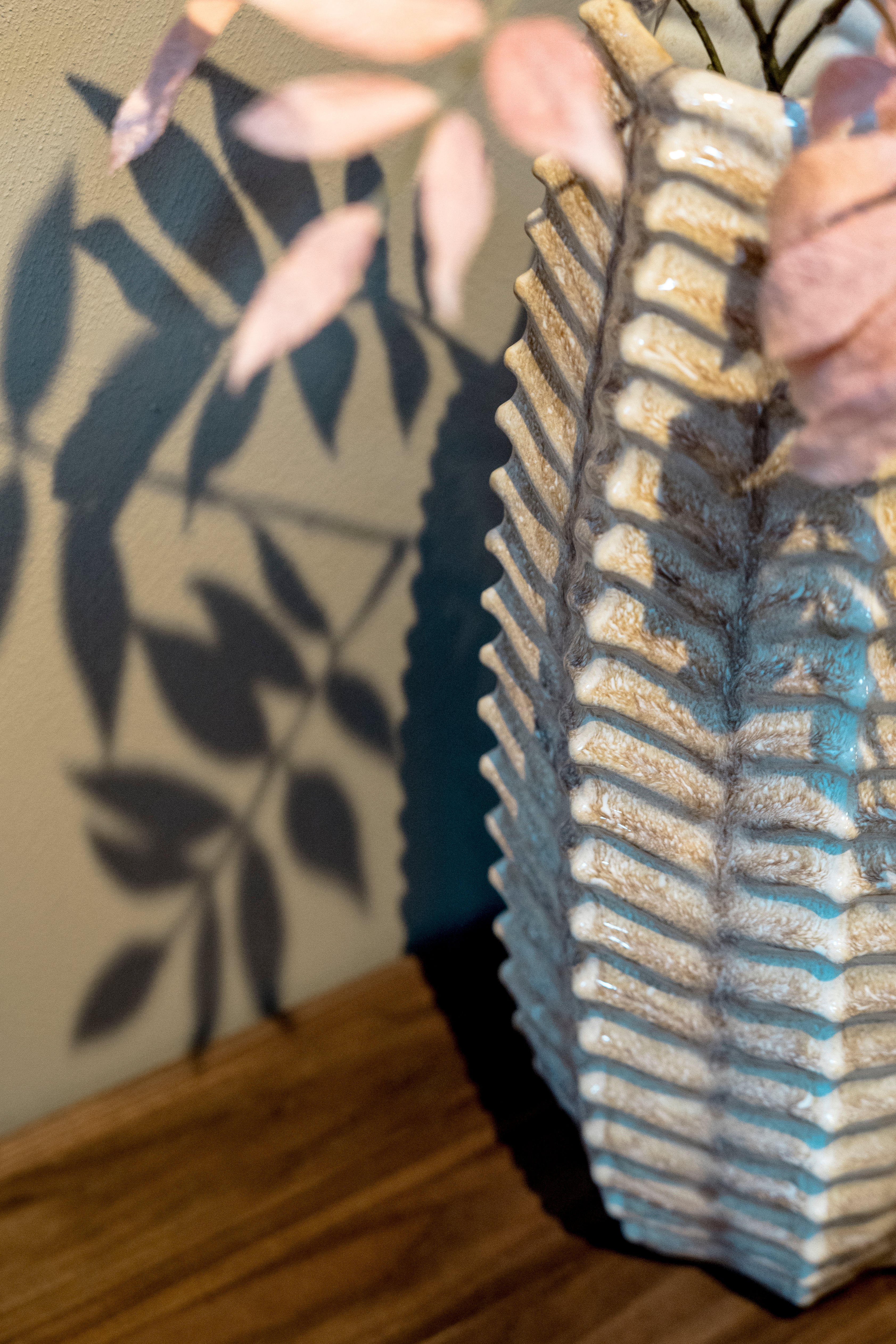 Bring the calming waves of the ocean inside with our champagne-coloured "Sandy Wave" ceramic vase, inspired by the beach theme. Available in two sizes, this beautiful and unique item offers a sophisticated addition to any interior. The organic waves and subtle sheen of the ceramic create a serene and elegant look. Combine this vase with its different sizes or mix and match with our other champagne-coloured oil lamps for a complete and harmonious decor. Let your home shine with the soothing beauty of the coast with this "Sandy Wave" vase.