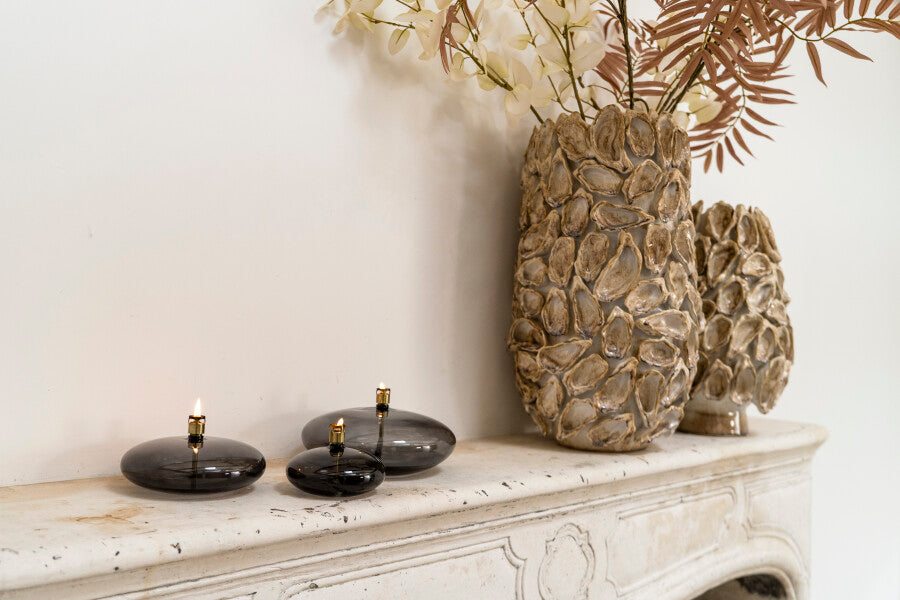 Een tijdloos ontwerp dat rust, luxe en verfijning uitstraalt zowel solo als in combinatie met andere olielampen.