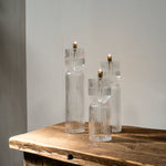 Ribelle Clear Brass S/M/L van Peri Living zijn elegante olielampen die dankzij haar royale hoogte direct een statige uitstraling heeft. Het heldere glas met verfijnd ribbelpatroon geeft de lamp een lichte en moderne look, terwijl de messingkleurige lont-houder zorgt voor een luxe, warme afwerking.