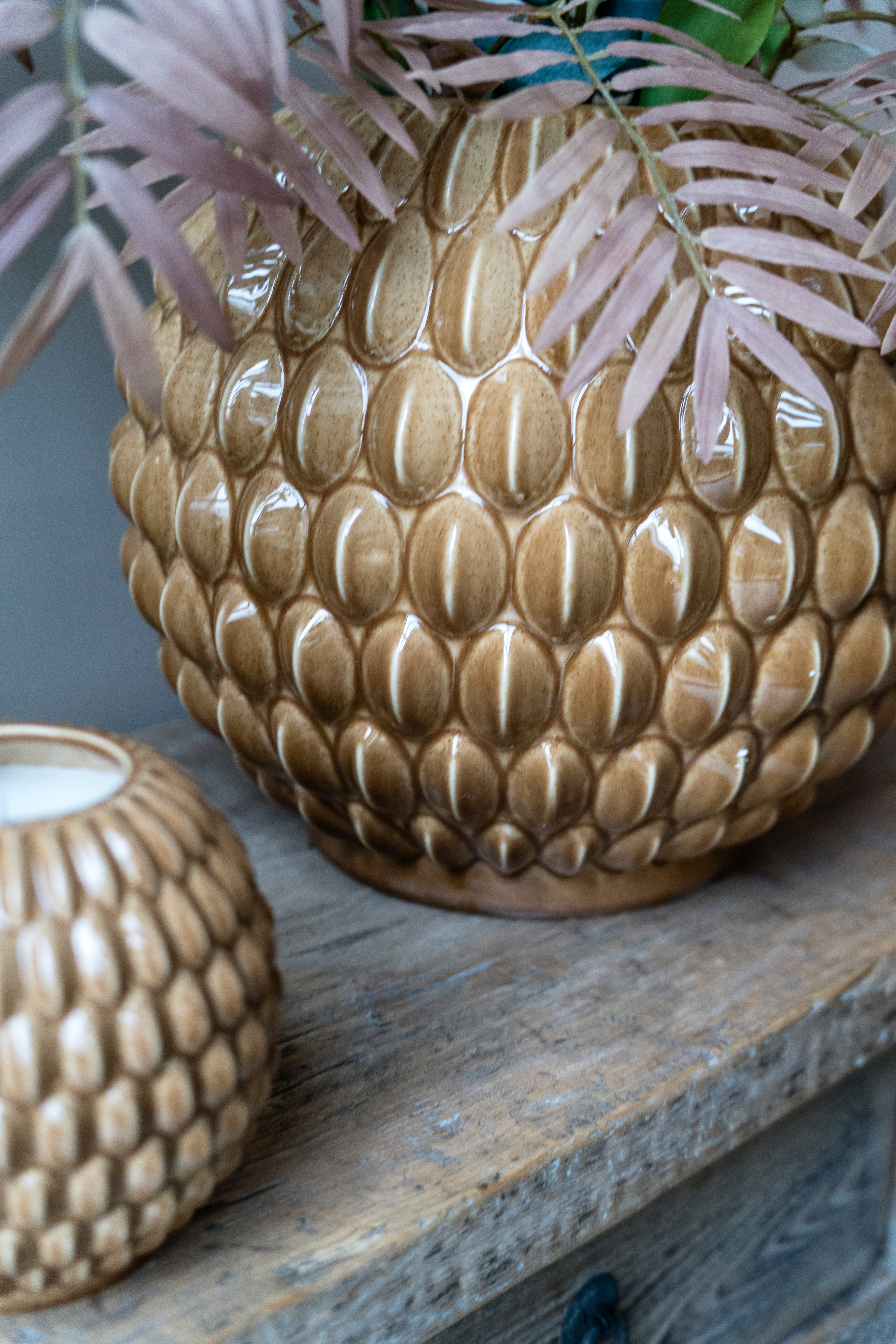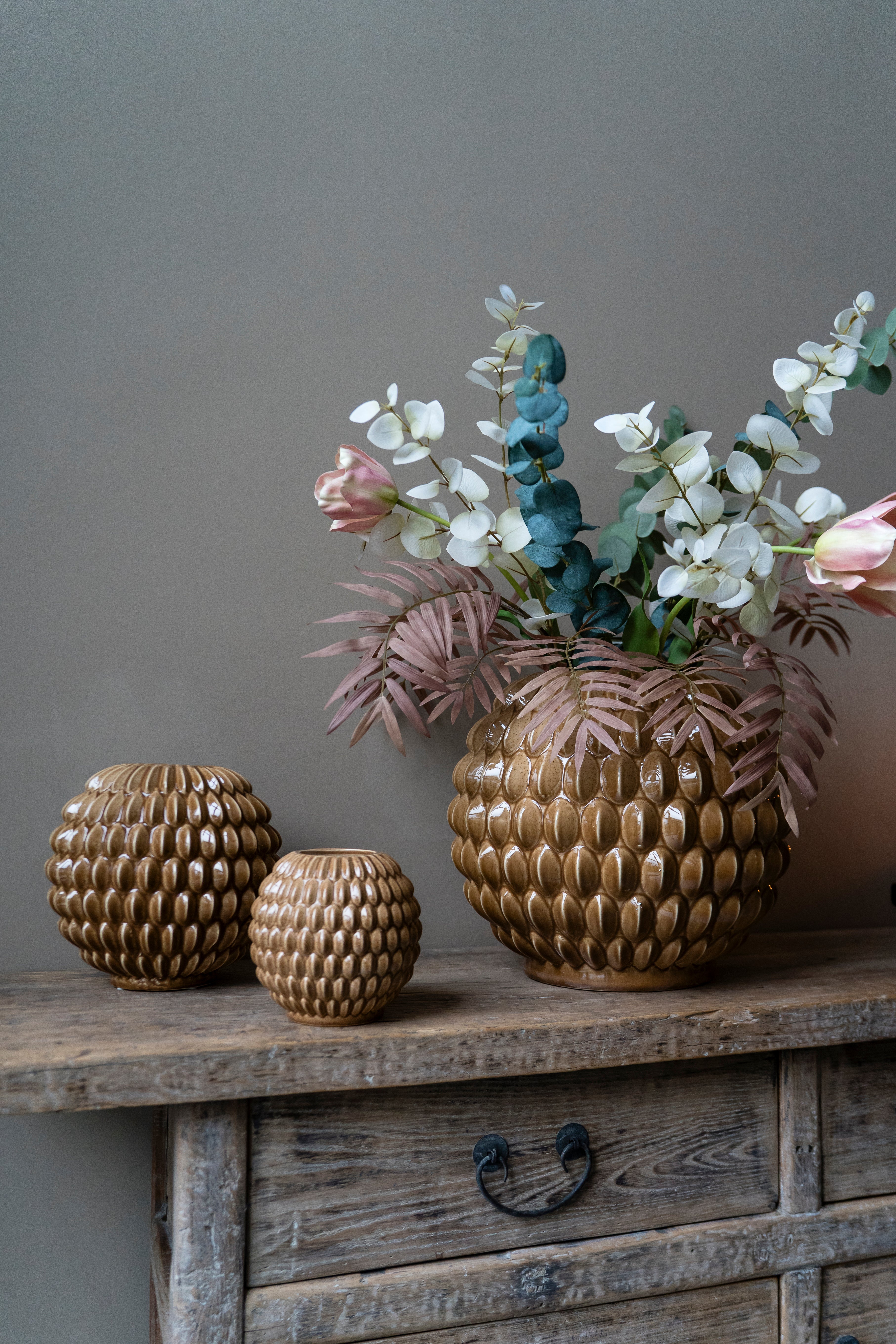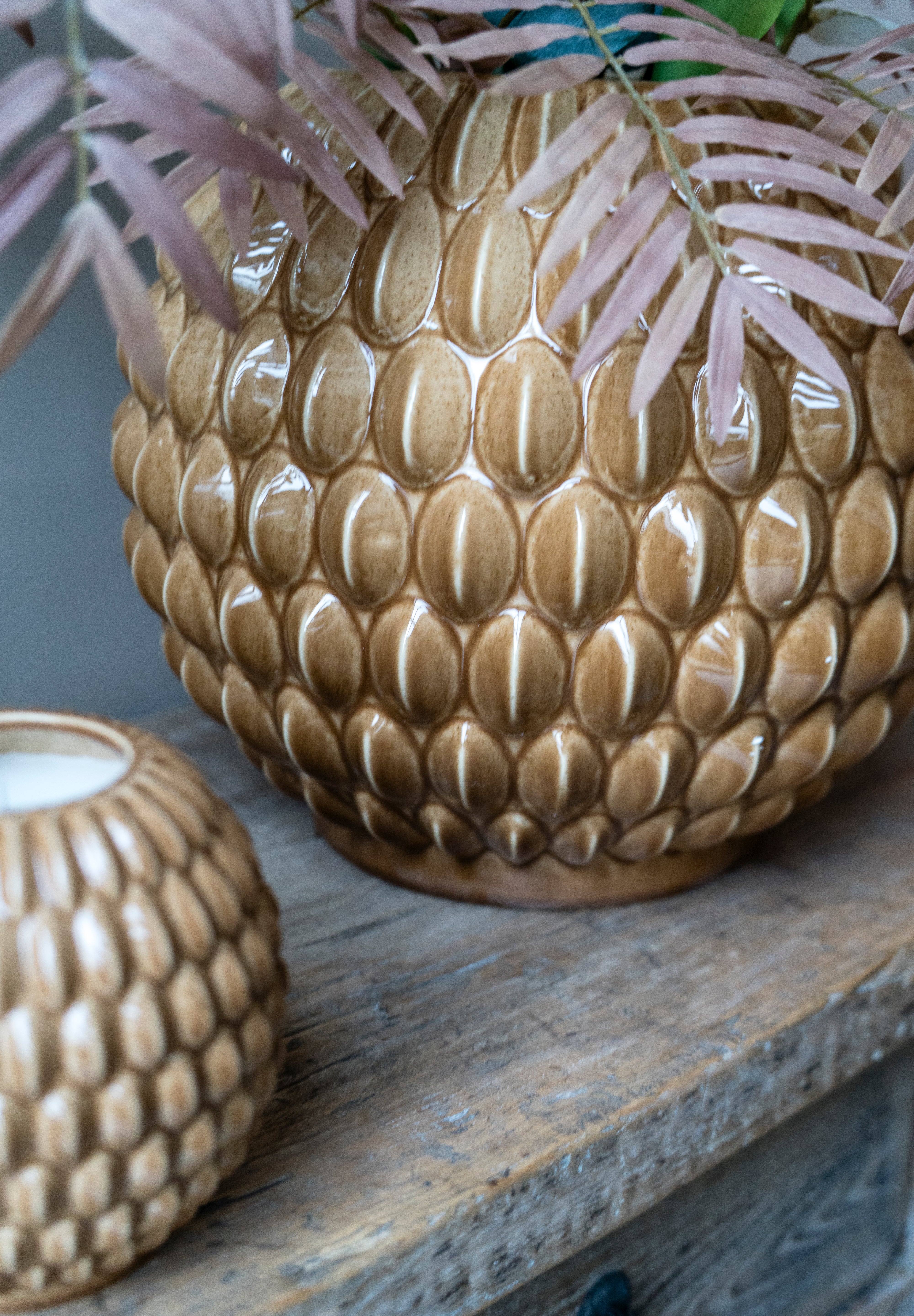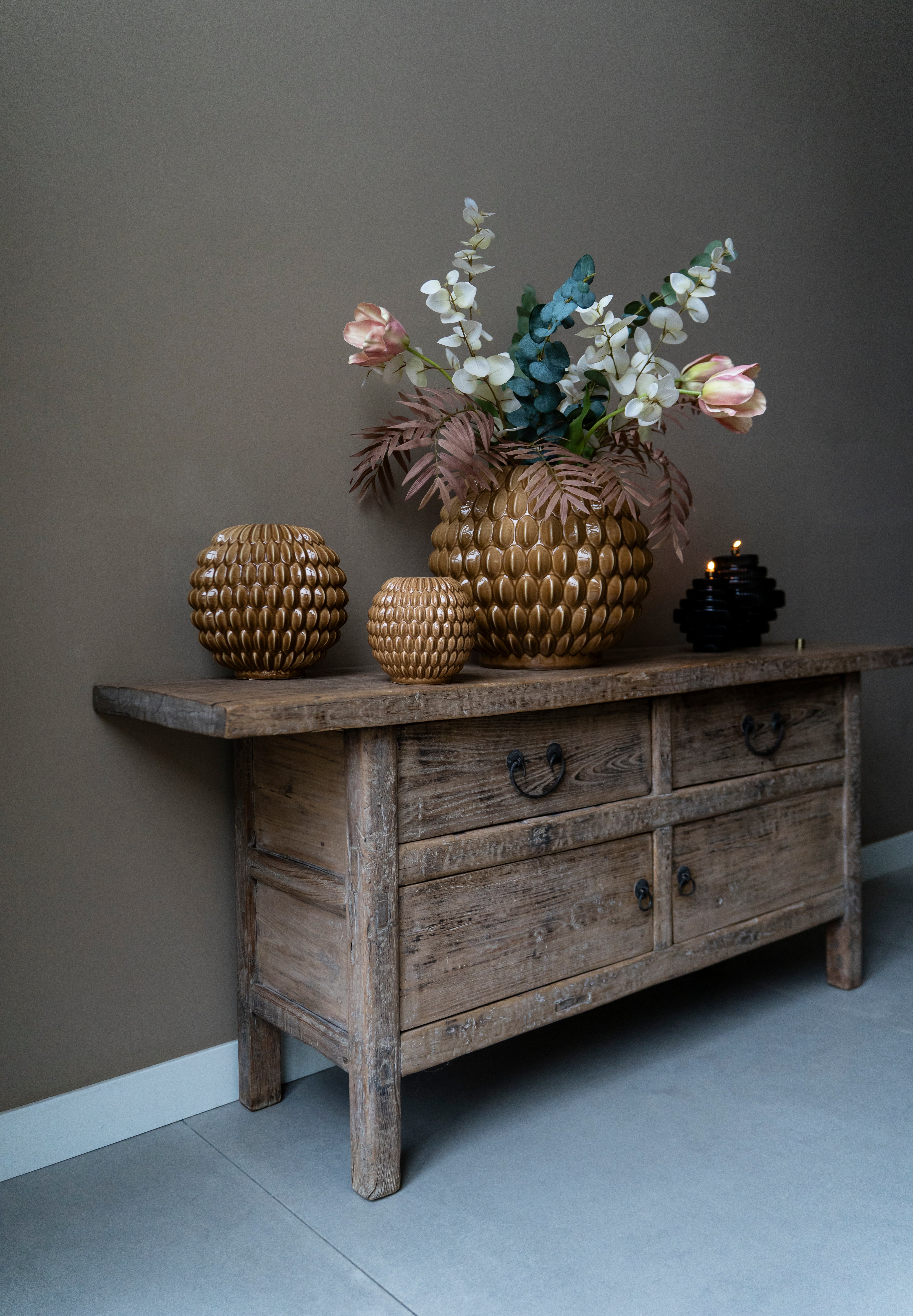 Met zijn middelgrote formaat is deze vaas geschikt voor losse takken, gedroogde bloemen of kleinere boeketten. Dankzij de stevige keramische constructie staat hij stabiel en blijft hij ook zonder inhoud een sterk decoratief object. De vorm maakt hem ideaal voor styling op een dressoir, bijzettafel of open kast.