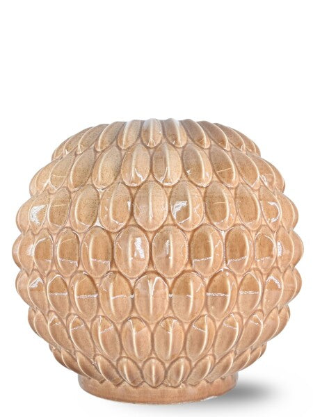 De Bubble Cappuccino M is een keramieke vaas met een opvallende, ritmische bubbelsculptuur die meteen structuur en diepte toevoegt aan het interieur. De bolvorm en de warme cappuccinotint zorgen voor een rustige, natuurlijke uitstraling, terwijl het glanzende oppervlak het reliëf mooi benadrukt.